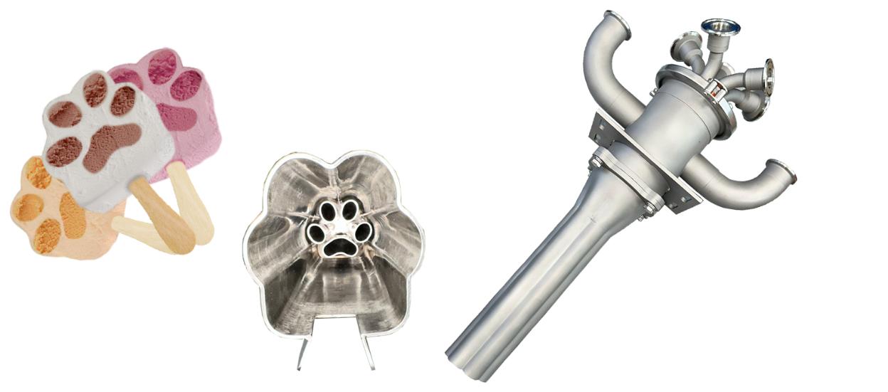 С помощью экструдера можно производить яркие вариации мороженого с чётко выраженными слоями.