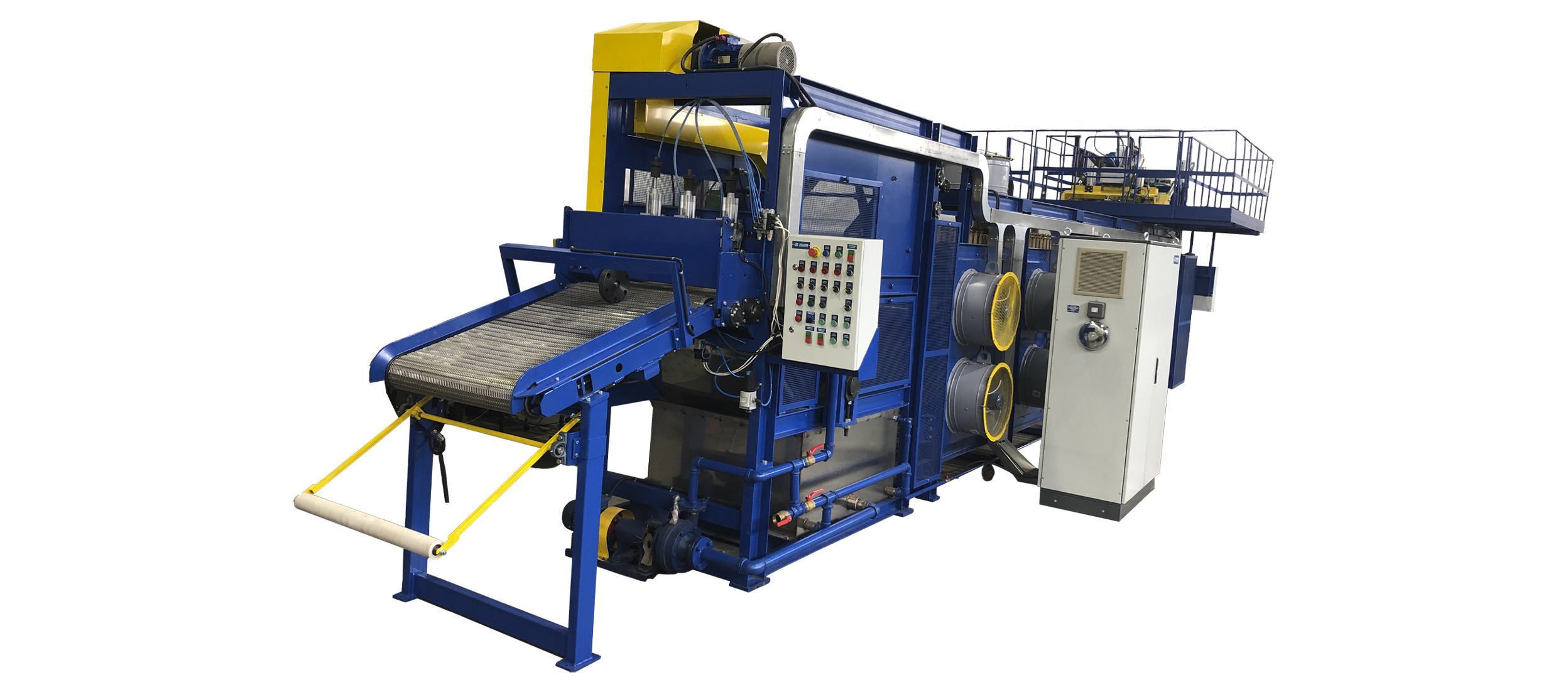 Предназначена для отбора листовых резиновых смесей от червячной машины с валковой головкой или вальцев, охлаждения, автоматического съёма ленты и укладки на поддоны в подготовительных производствах шинных, кабельных заводов и заводов РТИ.