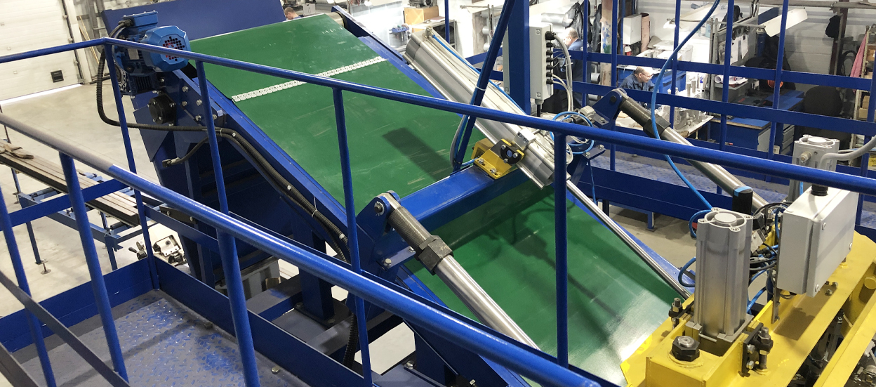 Предназначена для отбора листовых резиновых смесей от червячной машины с валковой головкой или вальцев, охлаждения, автоматического съёма ленты и укладки на поддоны в подготовительных производствах шинных, кабельных заводов и заводов резинотехнических изделий.