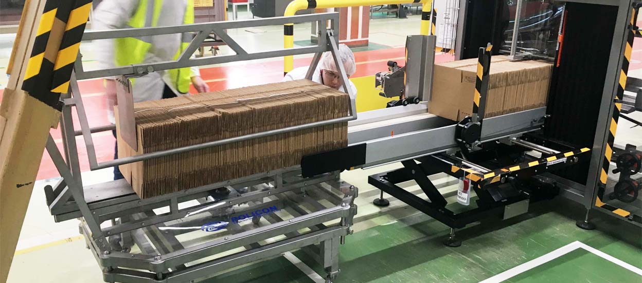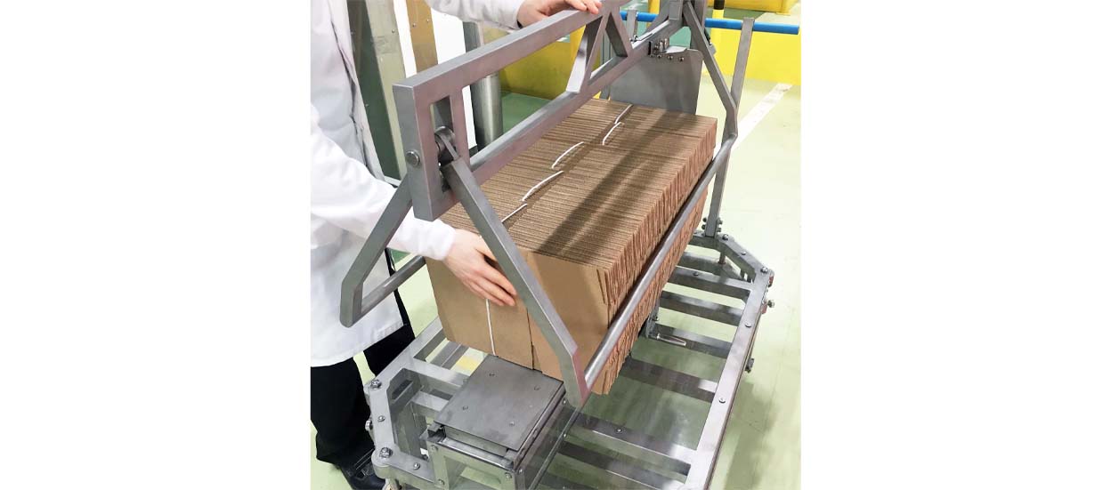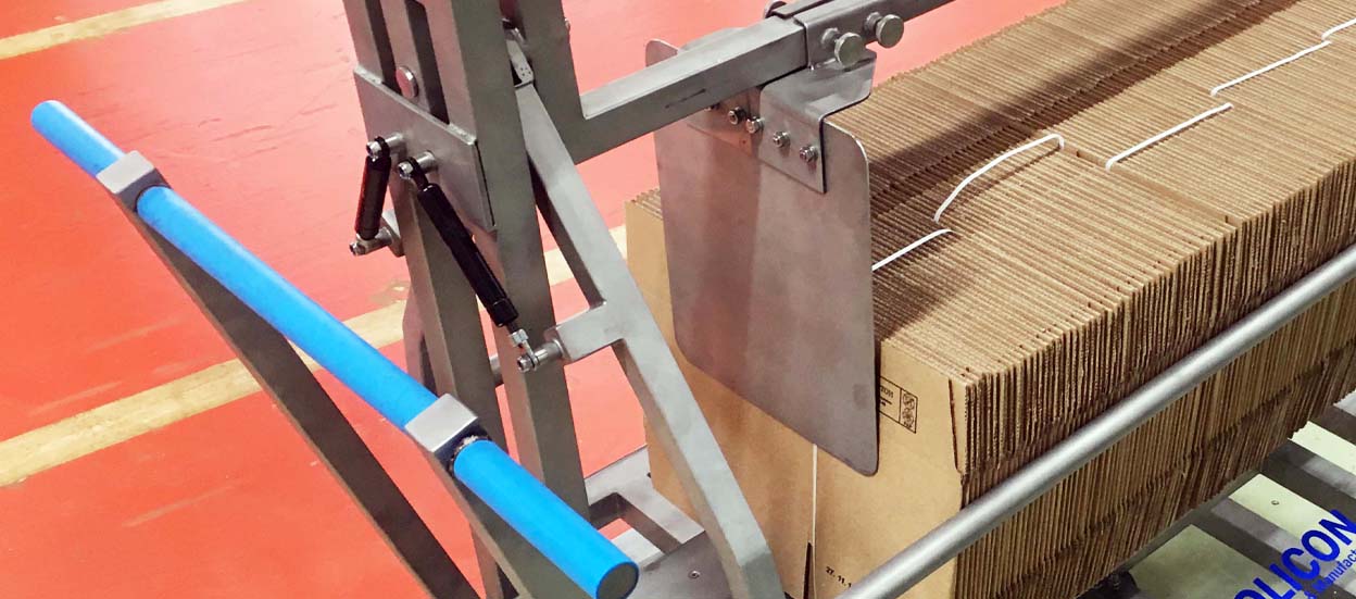 Телега для поставки ящиков предназначена для транспортировки гофроящиков различных размеров и разгрузки их в формирователь ящиков Lantech/Siat.