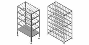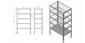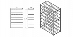 Стеллаж регулируется по высоте при помощи винтовых опор.