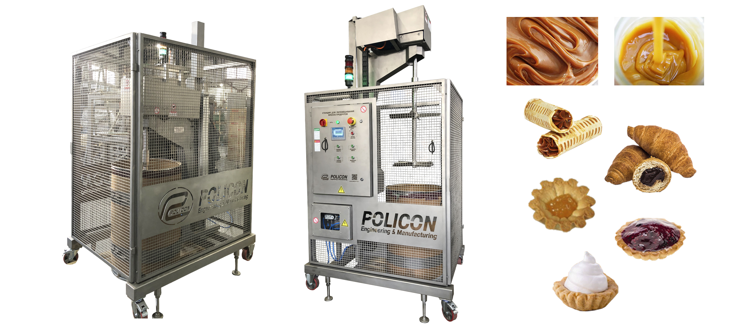 Станция предназначена для равномерного перемешивания наполнителей (сгущенное молоко, соленая карамель, крем, повидло, джем, ореховая паста), поступающих в бочках при производстве мороженого и кондитерских изделий, а также для дальнейшего декорирования и ввода в продукт.