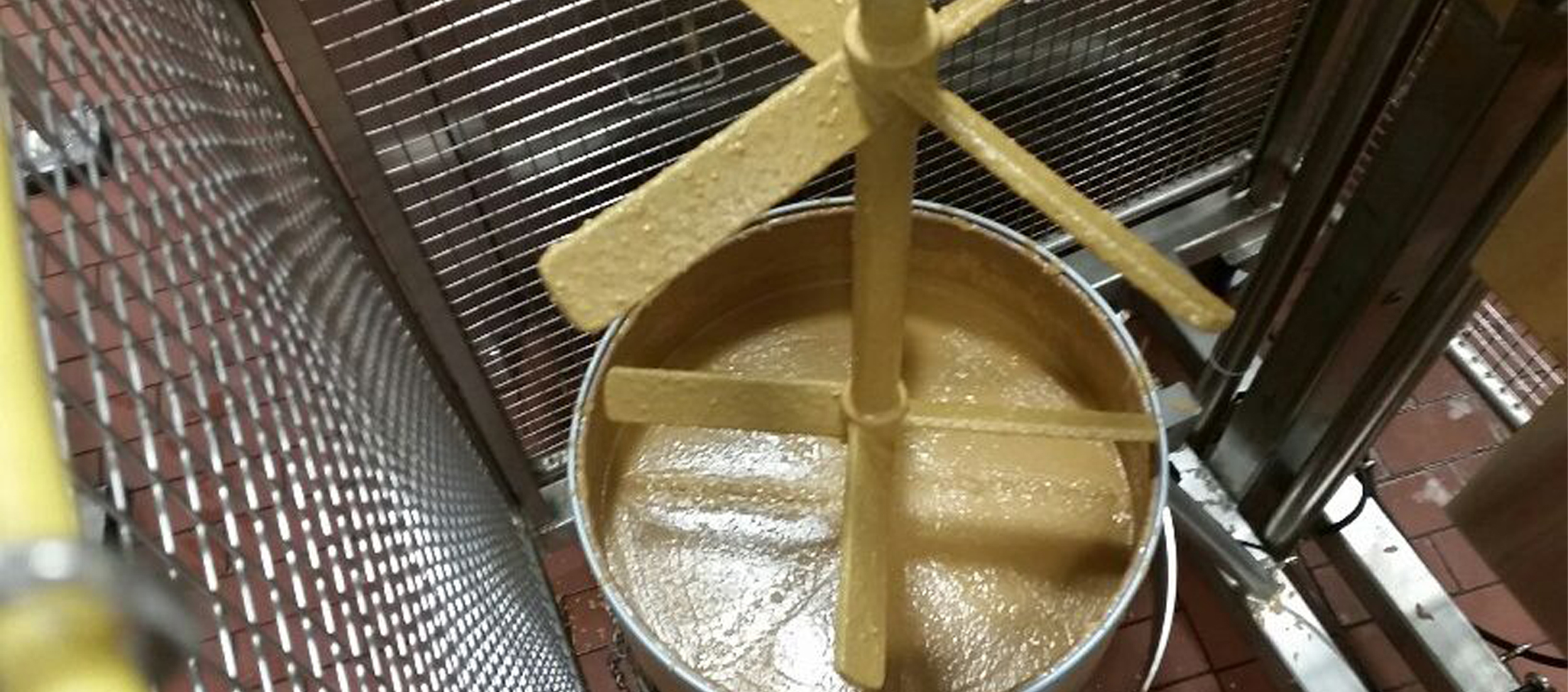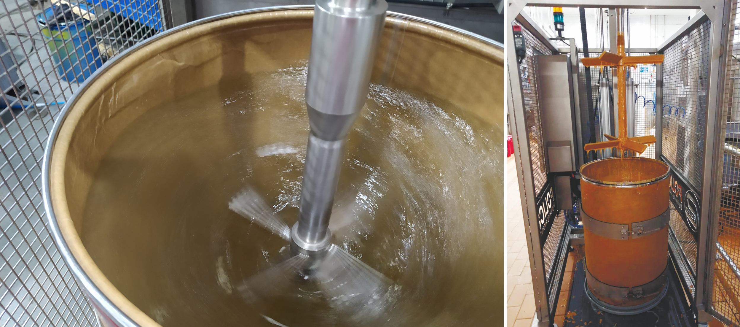 Станция предназначена для равномерного перемешивания наполнителей, поступающих в бочках при производстве мороженого и кондитерских изделий, а также для дальнейшего декорирования и ввода в продукт.